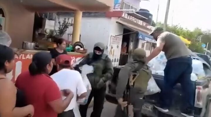 Reparten despensas a afectados por las lluvias, hombres armados de alguna célula criminal, ante el vacío del gobierno en Veracruz (VIDEO)