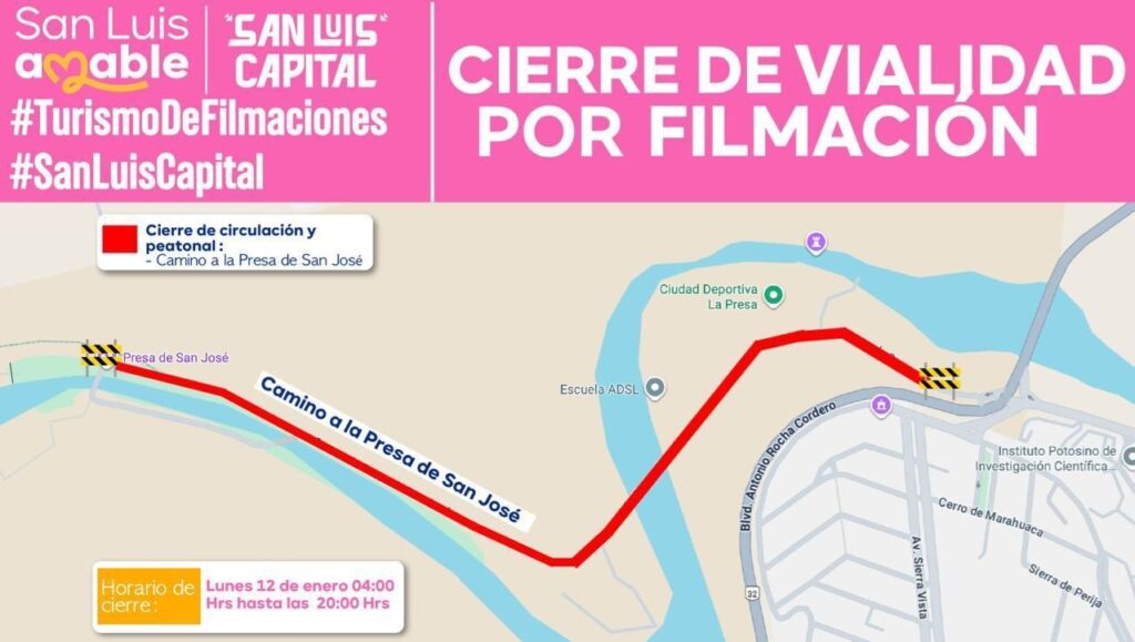 Este lunes, Camino a la Presa de San José permanecerá cerrado por filmación