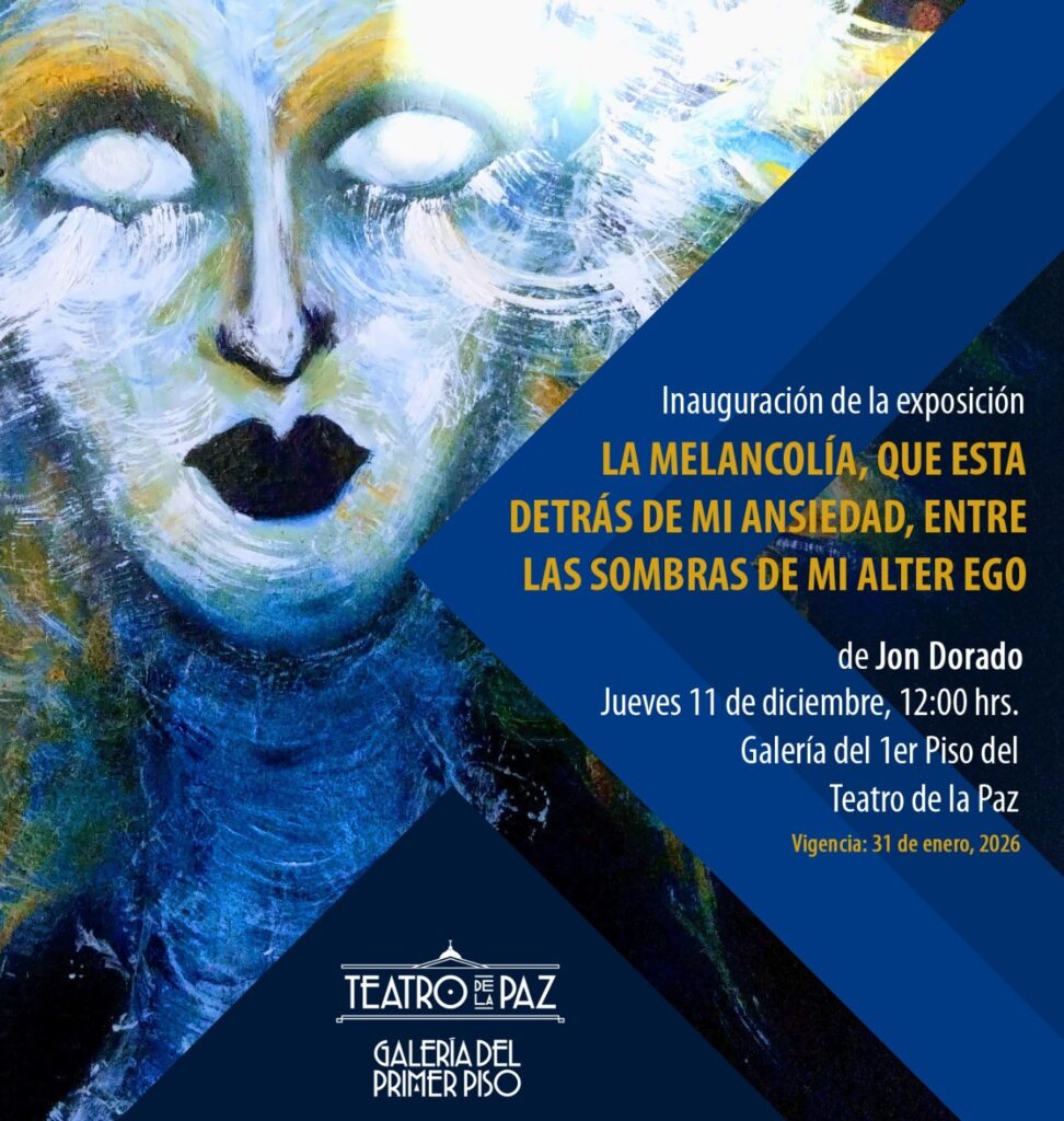 San Luis Potosí, S.L.P.- La Galería del Primer Piso del Teatro de la Paz abrirá sus puertas el jueves 11 de diciembre a las 12:00 horas para recibir la exposición “La melancolía que está detrás de mi ansiedad entre las sombras de mi alter ego”, del artista potosino Jon Dorado. La muestra reúne 33 piezas […]