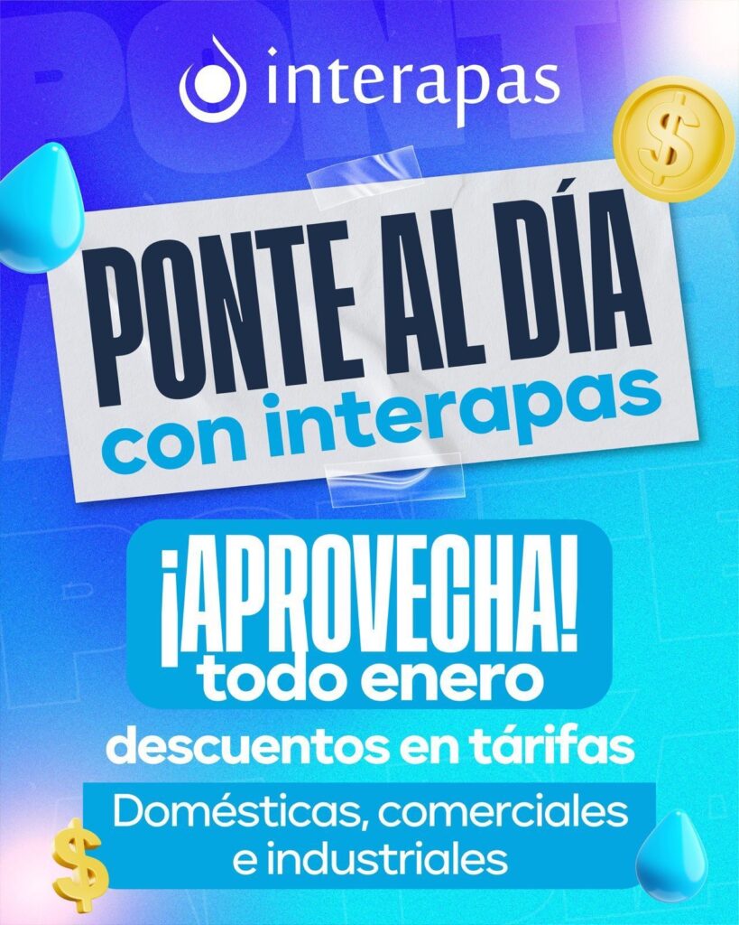 Interapas aplicará descuentos de hasta 50% en adeudos durante enero