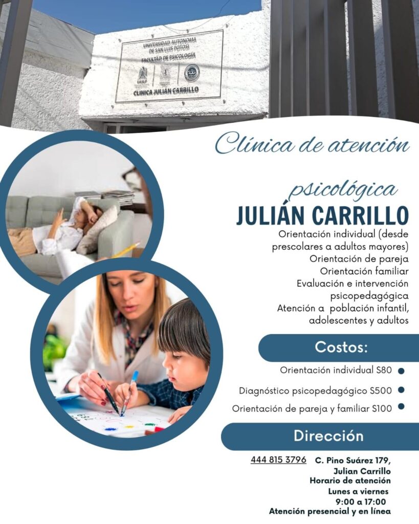 San Luis Potosí, S.L.P.- La Clínica de Atención Psicológica Julián Carrillo, adscrita a la Facultad de Psicología de la Universidad Autónoma de San Luis Potosí (UASLP), mantiene abiertos sus servicios a la población en general, ofreciendo atención profesional a bajo costo y funcionando como espacio formativo para estudiantes de los últimos semestres. La maestra Reyna […]