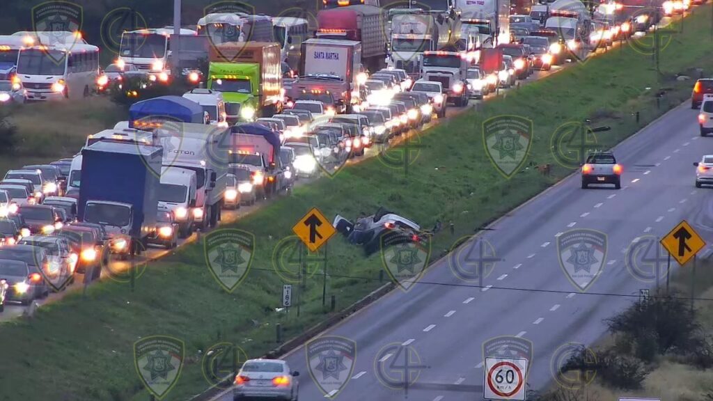 ¡Precaución! Volcadura y choque múltiple complican el tránsito en Carretera 57