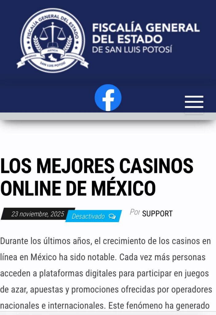 No es broma se publicitan los “mejores casinos online” ¡En la página de la Fiscalía General del Estado de San Luis Potosí!