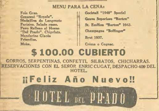 Uno de los eventos más emblemáticos ocurrió en diciembre de 1948, cuando el cantante y actor Jorge Negrete encabezó la cena-baile para recibir 1949 en el Salón Candiles del Hotel del Prado, ubicado en la entonces Avenida Juárez, frente a la Alameda Central. El acontecimiento fue anunciado en las páginas de EL UNIVERSAL como un evento de gala que marcaba la reaparición del ídolo en México.