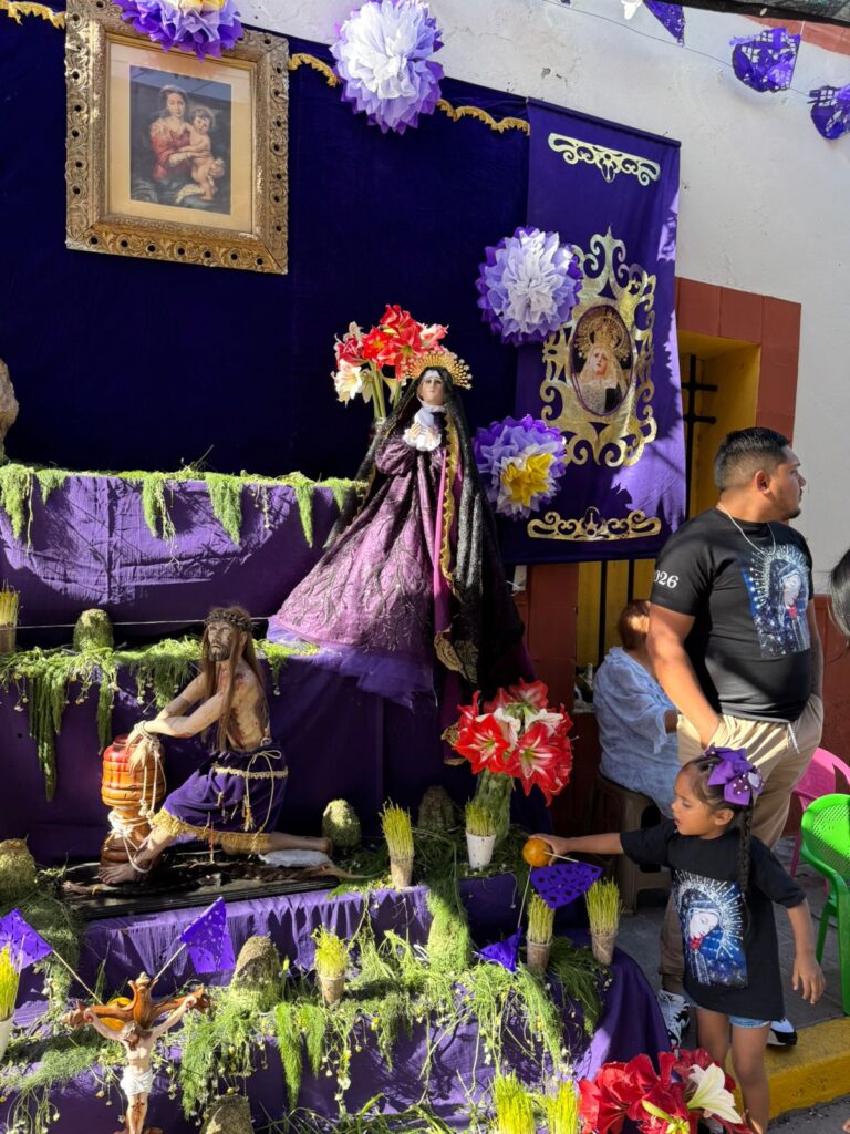 Bajo el sol de mediodía, uno podría esperar insolación y deshidratación, pero irónicamente, al finalizar el recorrido, se está más hidratado. Cada familia ofrece agua, incluso postres de hielo (bolis y paletas) a los visitantes de sus altares – una costumbre que no es casualidad. El agua suele acompañarse de semillas de chia, que además de aportar textura y sabor, simbolizan las lágrimas de la Virgen María al enterarse de la condena impuesta a su hijo en este mismo día.