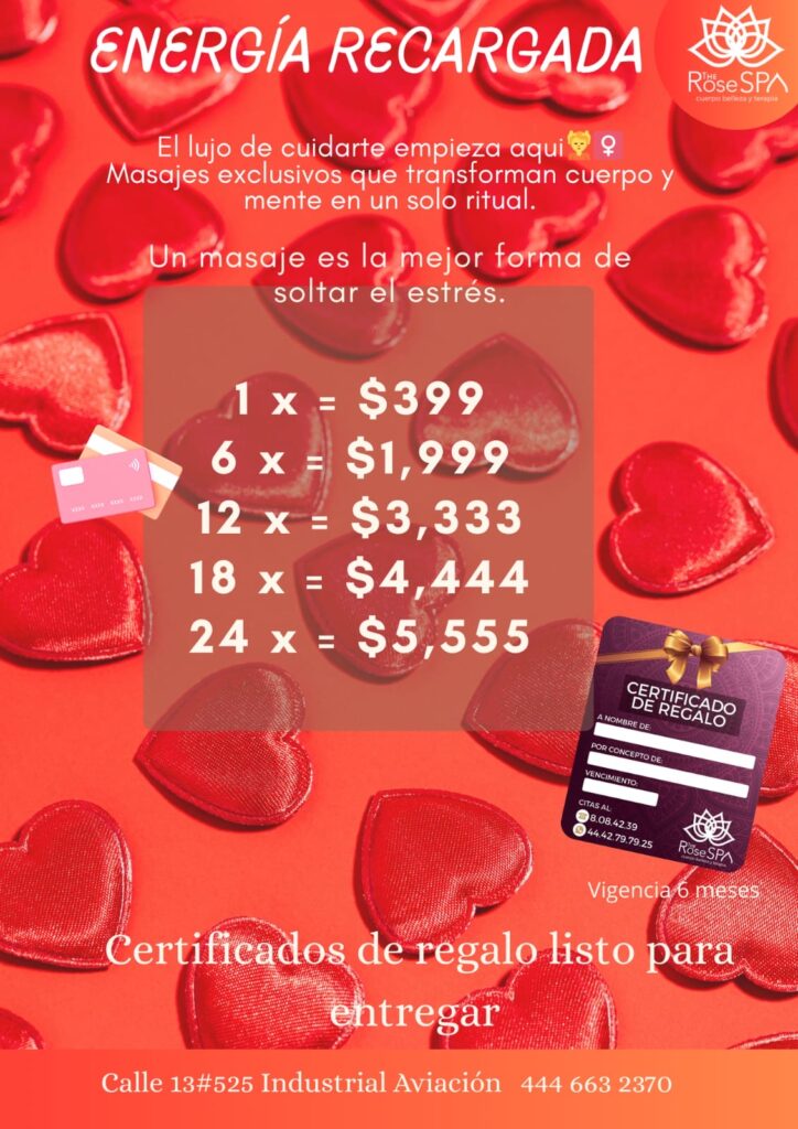 Recuerda que estos certificados están disponibles para que puedas agendar tu cita con anticipación, ya que el cupo es limitado. No dejes pasar esta oportunidad de regalar una experiencia de bienestar y amor que permanecerá mucho después de que termine el 14 de febrero. ¡Date prisa y aparta tu certificado hoy mismo!
