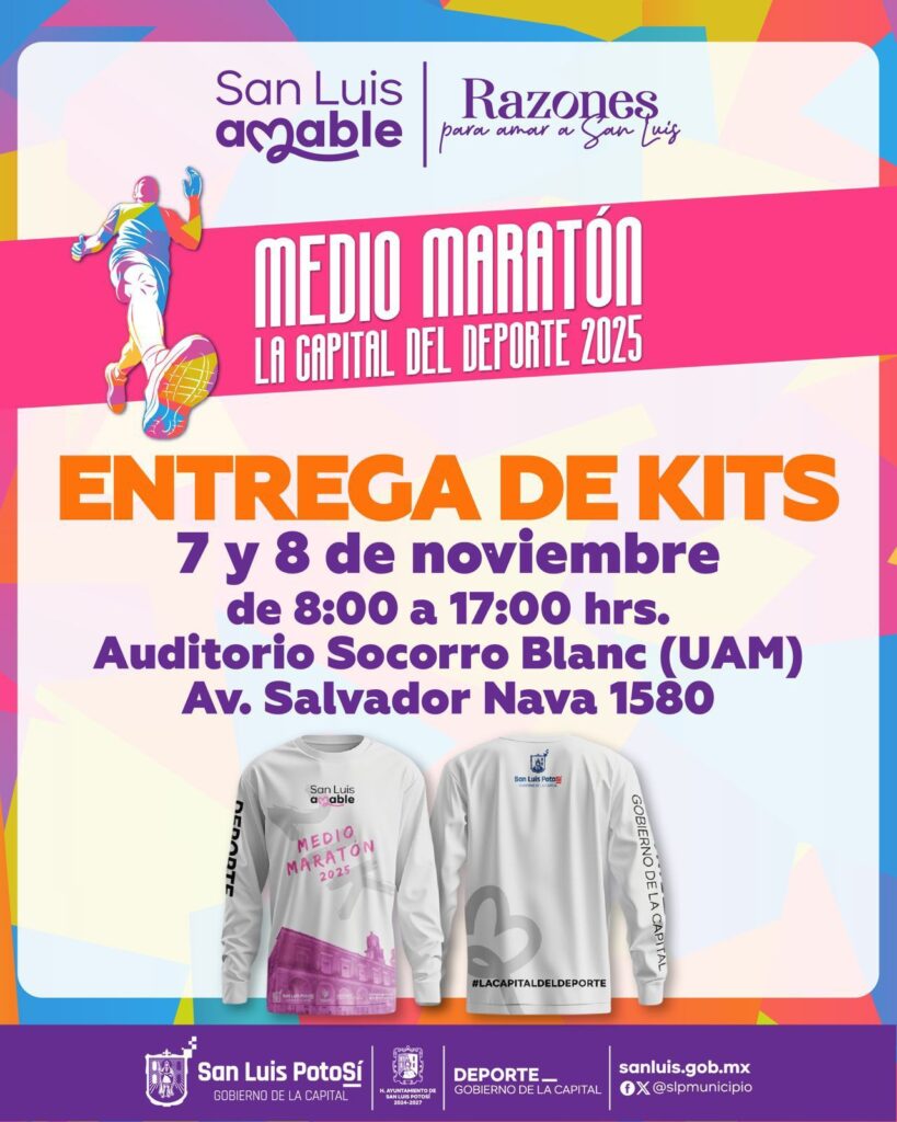 Este viernes 7 y sábado 8 de noviembre inicia la entrega de kits a los corredores que participarán en el Medio Maratón La Capital del Deporte 2025 a realizarse el domingo 9 de noviembre en punto de las 6:50 de la mañana.