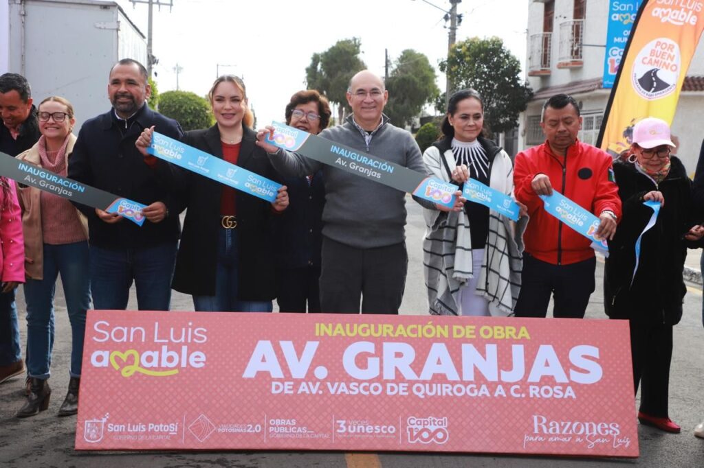 El Alcalde de San Luis Capital, Enrique Galindo Ceballos, inauguró la rehabilitación integral de la avenida Granjas, que conecta Vasco de Quiroga y avenida  Morales-Saucito, una de las vialidades más extensas e importantes de la colonia Industrial Aviación. Se trata de una obra que por décadas fue demandada por vecinas y vecinos de la zona, a quienes dio otra noticia: pavimentará otra calle más: Fray J. de Juárez, que presenta un evidente deterioro.
