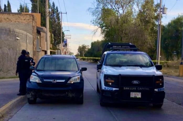 Como primer respondiente, los agentes municipal realizaronun operativo de búsqueda de indicios en el exterior del parque, logrando ubicar sobre la lateral de avenida Salvador Nava y la calle Luis de Mendizábal en el fraccionamiento Tangamanga, una camioneta Honda color azul que contenía en su interior armas de fuego de uso exclusivo del Ejército, así como cargadores y cartuchos.