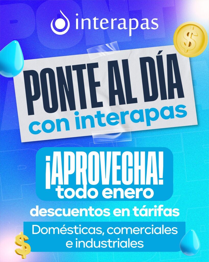 Interapas aplicará descuentos de hasta 50% en adeudos durante enero