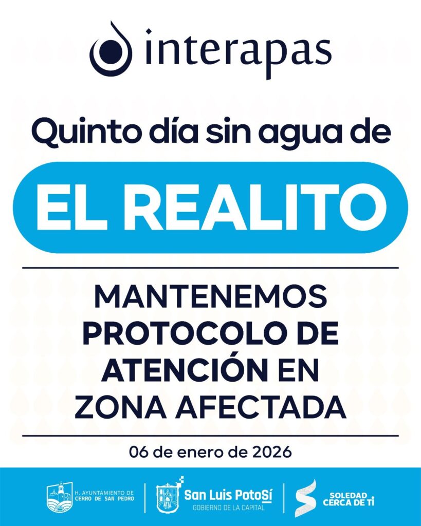 San Luis Potosí, S. L. P.- Al cumplirse el quinto día de la primera interrupción del sistema “El Realito” en este 2026, el organismo INTERAPAS intensifica su plan de contingencia para garantizar el suministro de agua potable en las colonias del sur y oriente de la ciudad. Para compensar el déficit de caudal, se mantiene […]