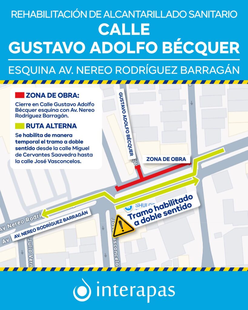 San Luis Potosí, S.L.P.- Como parte de los trabajos permanentes para atender colapsos en la red sanitaria, Interapas inició la rehabilitación de un tramo de drenaje en Gustavo Adolfo Bécquer, esquina con avenida Nereo Rodríguez Barragán, en la colonia Del Valle, lo que ha generado cierres temporales a la circulación. La intervención contempla el reemplazo […]