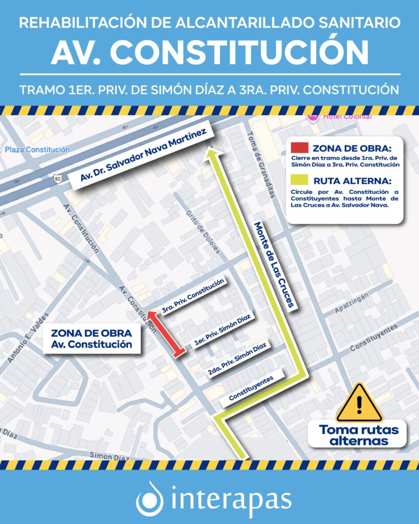 Interapas rehabilita drenaje sanitario en Avenida Constitución