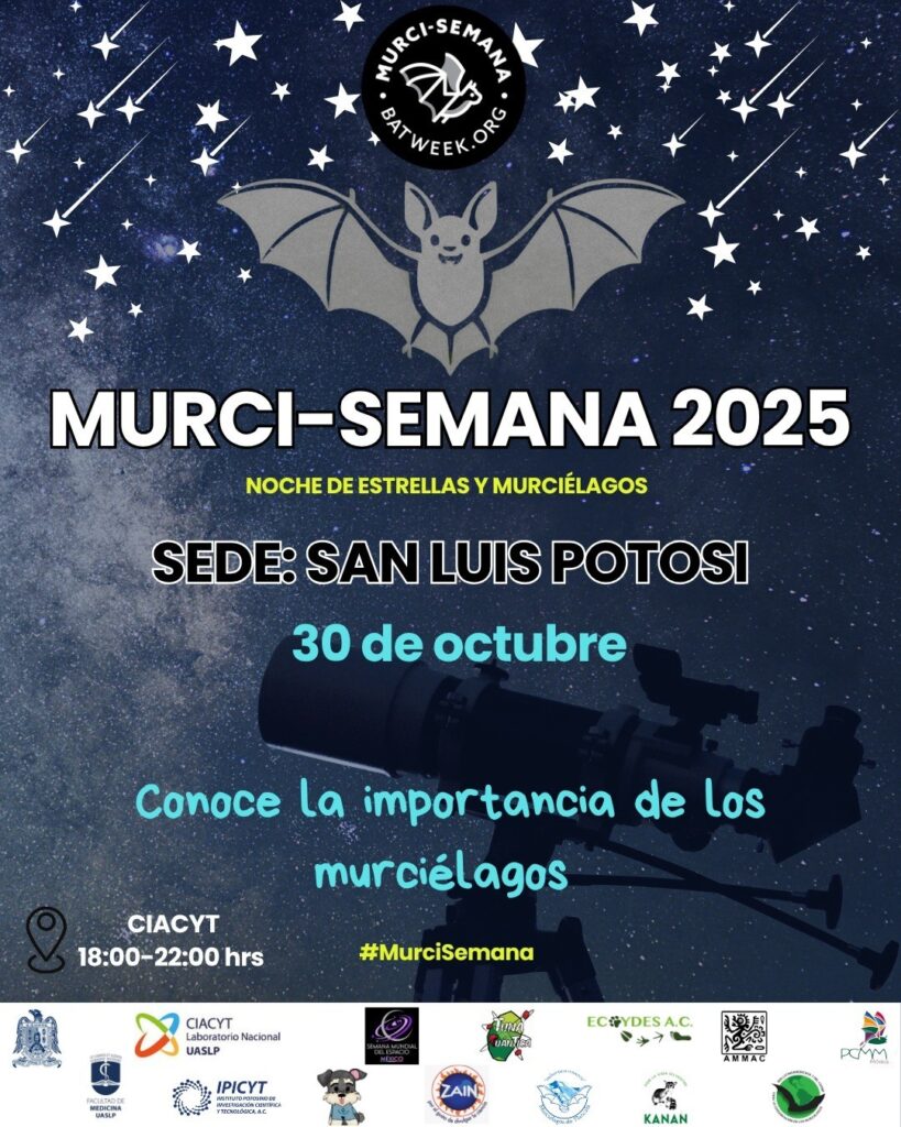 San Luis Potosí, S.L.P.- Con el objetivo de divulgar la importancia biológica y ecológica de los murciélagos, la Universidad Autónoma de San Luis Potosí (UASLP) realizará la Murci Semana 2025 el próximo miércoles 30 de octubre, de 18:00 a 22:00 horas, en las instalaciones de la Coordinación para la Innovación y Aplicación de la Ciencia […]
