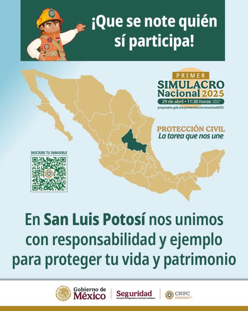 San Luis Potosí listo para el Segundo Simulacro Nacional de Protección Civil con amplia participación ciudadana
