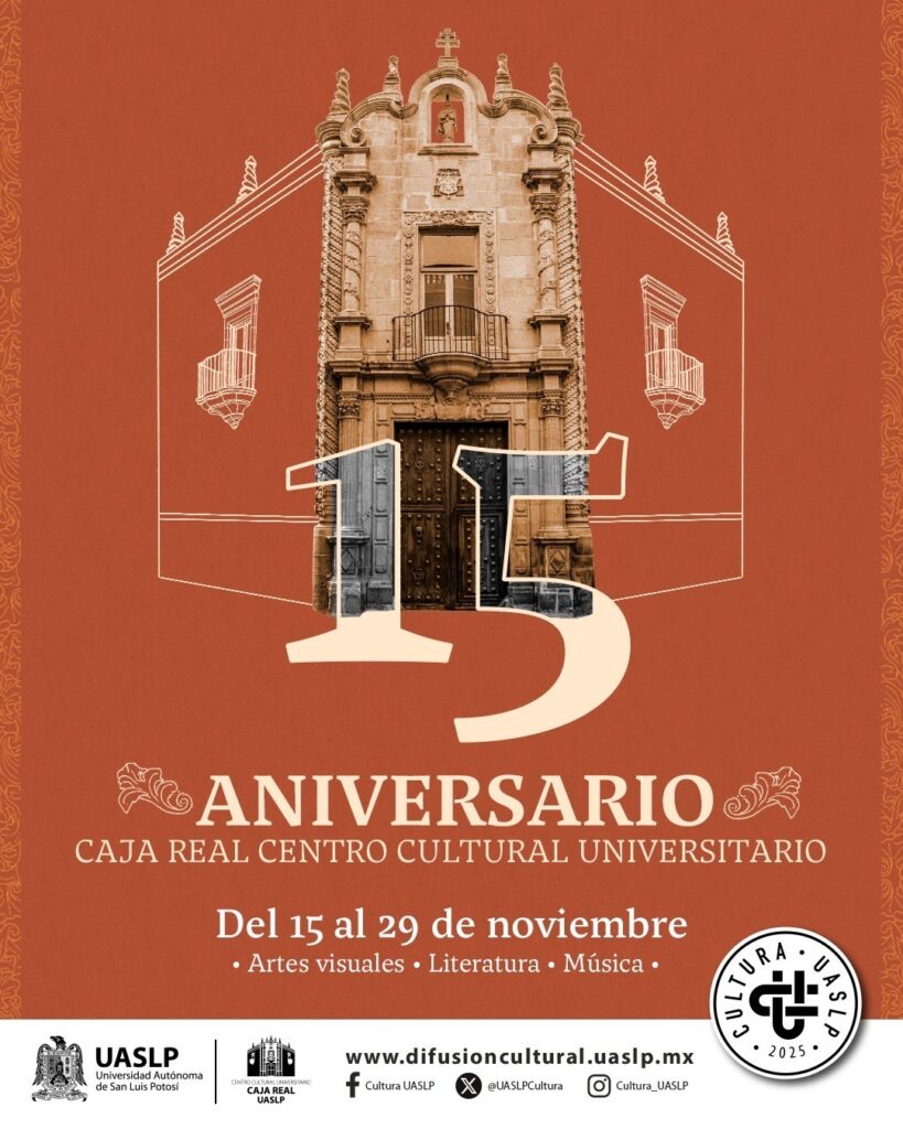 San Luis Potosí, S.L.P., noviembre de 2025 — El Centro Cultural Universitario Caja Real de la Universidad Autónoma de San Luis Potosí (UASLP) celebra durante noviembre sus primeros 15 años como espacio dedicado a la promoción artística, la reflexión patrimonial y el encuentro cultural. La conmemoración incluye una variada programación de actividades gratuitas abiertas al […]