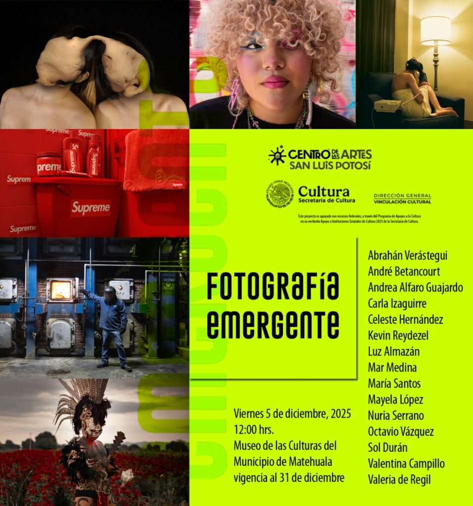 Matehuala, S.L.P.- La Secretaría de Cultura del Gobierno del Estado invita a la ciudadanía a visitar la exposición “Colectiva Fotografía Emergente”, que se presenta en el Museo de las Culturas de Matehuala del 5 al 31 de diciembre de 2025, con entrada libre. La muestra reúne el trabajo de 15 artistas —entre ellos Abrahán Verástegui, […]