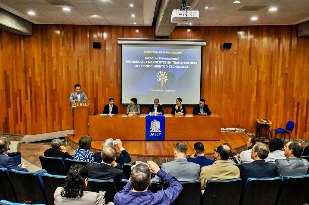 San Luis Potosí, S.L.P.- Con el propósito de reactivar la colaboración y el diálogo en torno a la transferencia tecnológica, la Universidad Autónoma de San Luis Potosí realizó en el Centro de Emprendimiento e Innovación el Coloquio Internacional Tendencias Emergentes en Transferencia del Conocimiento y Tecnología, impulsado por la Secretaría de Vinculación Social y la Facultad de Psicología.